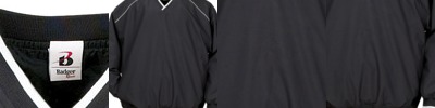 100% sanded microfiber polyester • Fully lined with 100% polyester taffeta • Water- and wind-resistant • Locker loop • Welted pockets • Spandex reinforced rib-knit V-neck collar and cuffs • Collar and cuffs with tipping • Badger side panel for better fit • Sizes: XS-6XL