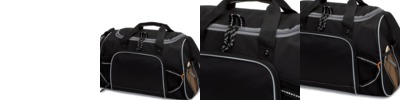 600-denier polyester • front mesh pockets • side mesh water bottle pocket • front and side zippered pockets • adjustable shoulder strap • top grab handles • CPSIA compliant • 7”w x 4 1/2”h approx. front pocket heat transfer and imprint area • 4 1/2" diameter max. front pocket embroidery area • Sizes: 9 1/2"w x 11"h x 19"L