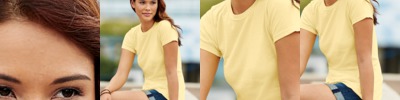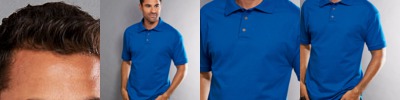 preshrunk 100% cotton jersey • 4.5-oz. • deluxe 30's Softstyle yarns • non-top-stitched 1/2" rib-knit collar • taped neck and shoulders • mitered V-neck pattern • side-seam construction with tapered fit • double-needle sleeve and bottom hems • quarter-turned to eliminate center crease • Sizes: S-3XL
