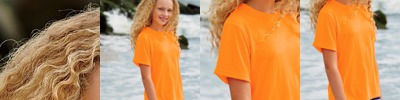 preshrunk 50% polyester/25% cotton/25% rayon jersey • 4.3-oz. • 32 singles for extreme softness • 1x1 rib-knit set-in collar • satin label • Sizes: S-2XL