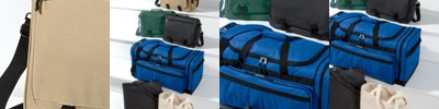 600-denier polyester/PVC • expandable • adjustable/detachable padded shoulder straps • zippered main compartment • PVC wrap-top handle • zippered sleeve pocket on flap • key clip and multi-use organizer under flap • two open back pockets • black nickel hardware • 12"w x 4 1/2"h approx. imprint/embroidery area • Sizes: 16"w x 13"h x 3 1/2"d