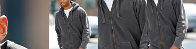 preshrunk 80% ring-spun cotton/20% polyester • 10-oz. • garment-dyed • distressed raw edges on cuffs, shoulder seams, pockets and waistband • thermal-lined hood with matching drawstring • antique brass zipper and zipper pull • split front pouch pocket • Sizes: S-3XL