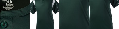 100% polyester • 3.5-oz. • moisture-management/antimicrobial performance fabric • 2 button placket • self-fabric collar • front and back shoulder piping • contrasting underarm inserts • double-needle hem with tack • left-sleeve heat transfer logo • Sizes: S-L