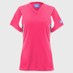 100% Polyester • Moisture Management/Antimicrobial Performance Fabric • Contrast Side and Underarm Panels • Self-Fabric V-Neck Collar • Double Needle Hem With Tack • Badger Heat Seal Logo On Left Sleeve • Sizes: XS-2XL