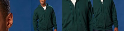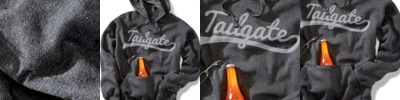 60% Ringspun Cotton/40% Polyester fleece fabric • 9 oz. • Built in Neoprene beverage holder inside front pouch pocket • Metal bottle/can opener attached to inside pocket • Coverstitched throughout • Sizes: S-3XL